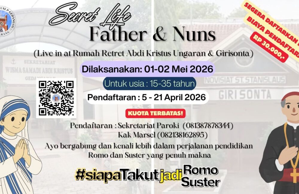 ✨ SECRET LIFE : FATHER & NUNS ✨ Jujur aja.. pernah kepikiran ngga sih, “gimana ya rasanya jadi Romo atau Suster?” 👀 Atau udah pernah ngerasa “dipanggil”, tapi pura-pura sibuk … Read More