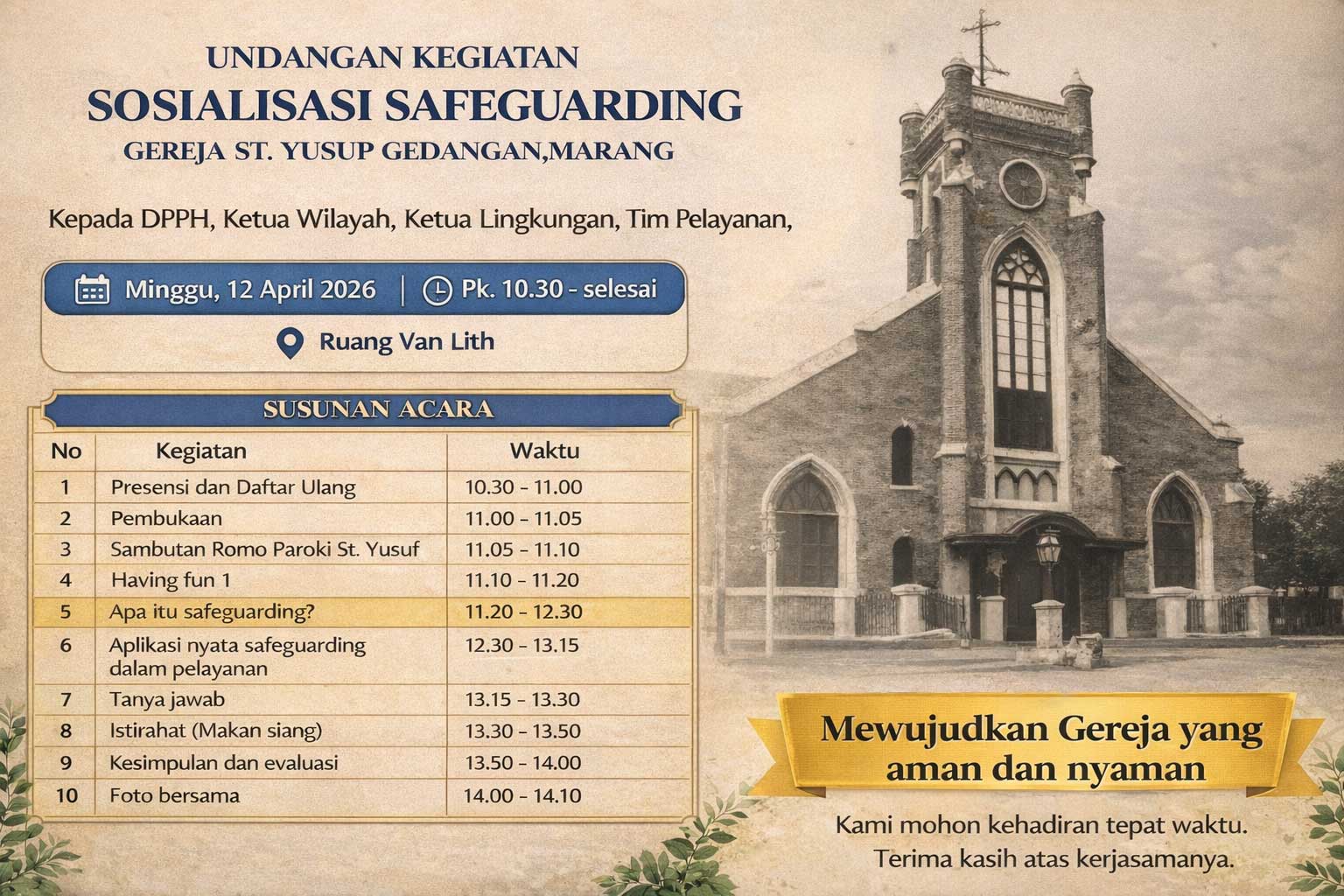 Tema: Mewujudkan Gereja yang aman dan nyaman
