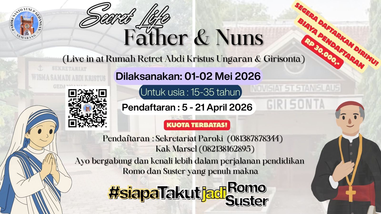 📍 Lokasi : Rumah Retret Abdi Kristus Ungaran (Putri) & Girisonta (Putra)