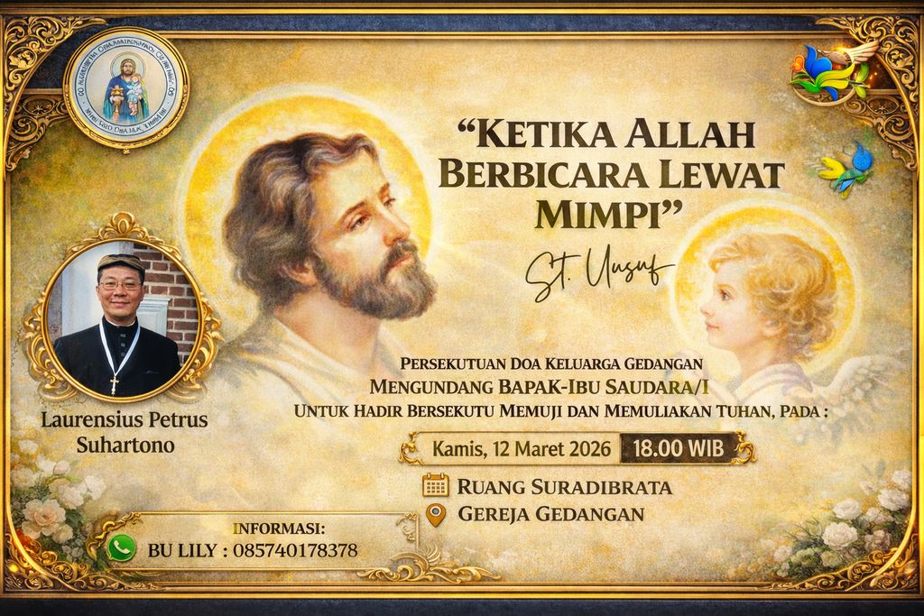 Ketika Allah Berbicara Lewat Mimpi Persekutuan Doa Keluarga Gedangan mengundang Bapak, Ibu, Saudara-saudari untuk hadir bersekutu memuji dan memuliakan Tuhan…